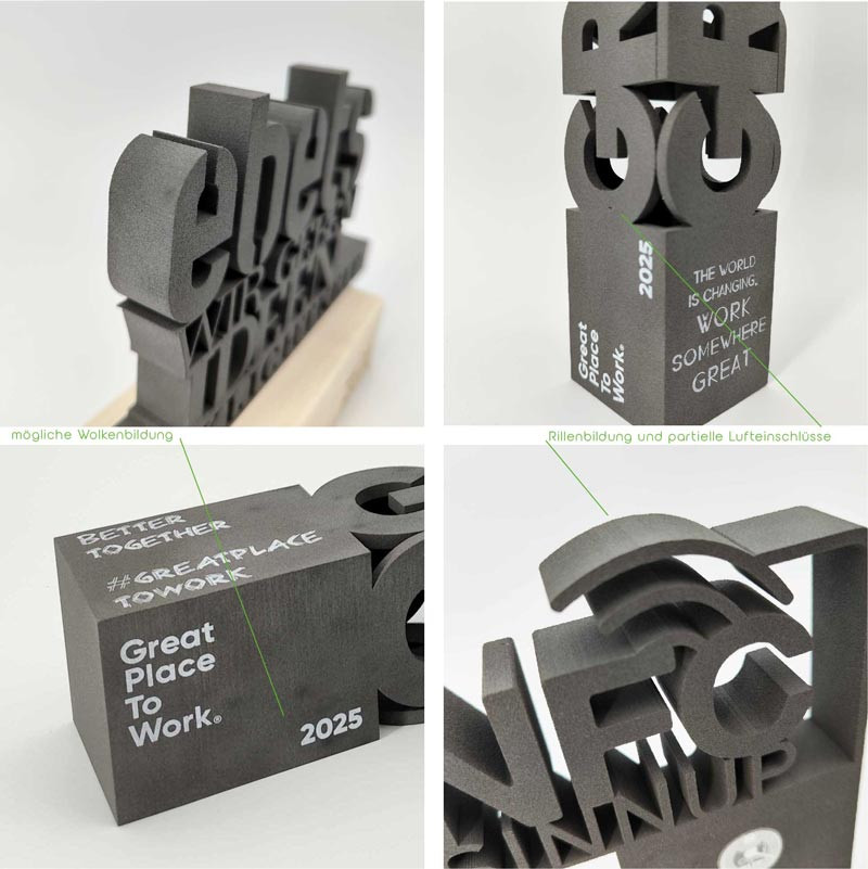 - Die Oberfläche und Farbe aus unserem 3D Druck ist ausschließlich in Anthrazit möglich.
