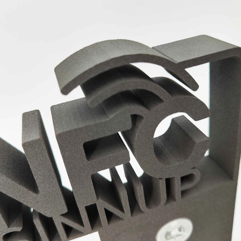 - Das Material ist ein Pulver, welches mittels Laser aushärtet und bietet enorme Stabilität und eine homogene Oberfläche ohne weitere notwendige Nachbearbeitung.