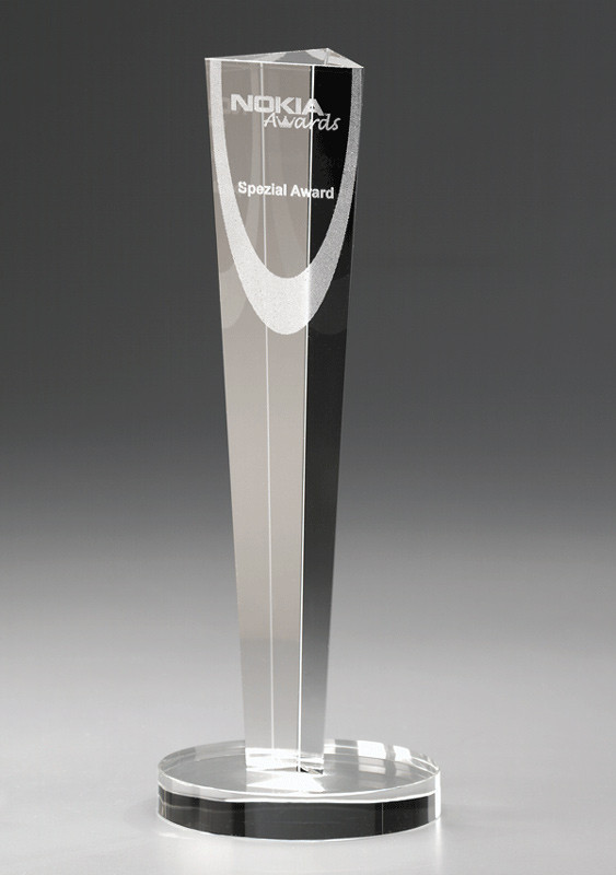 Diese Top-Trophäe vermittelt majestätische Erhabenheit und spitzt sich königlich in der Form eines Dreiecks nach unten hin zu. Der Associate Award wird mit Ihrem individuellem UV-Druck oder Ihrer Gravur zur ganz besonderen Trophäe.
