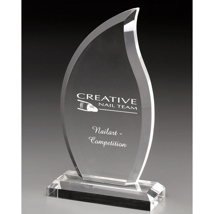 Diese Trophäe der absoluten Spitzenklasse besteht aus zwei elegant geschwungenen Türmen mit entgegengerichtetem Verlauf. Ein aufwändiger Diamantschliff und die Farbkombination von Rot und Silber vereinen diesen Award zu einem High-End-Produkt.