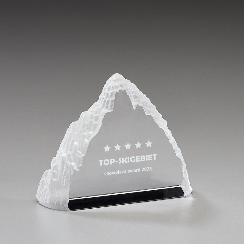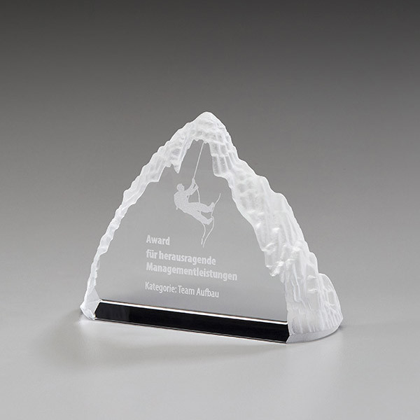 Dieser Award eignet sich durch seine Optik perfekt für die symbolische Würdigung von erreichten Zielen. Ein spannendes Spiel von Kontrasten ergibt sich durch einerseits die satinierten unregelmäßigen Kanten und andererseits die glatten Oberflächen. Das massive, 40 mm dicke Kristallglas sorgt für einen perfekten Stand und einen festen Griff.