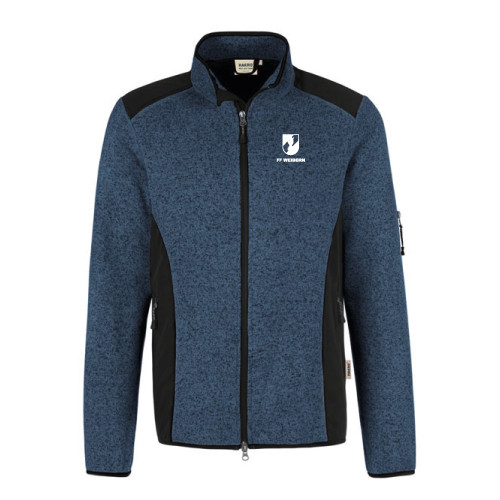 Sportive Herren-Strickfleecejacke mit kontrastfarbigen Einsätzen an den Seiten und Schultern - perfekt für Feuerwehren. Teilungsnähten auf Vorder- und Rückenteil sorgen für perfekte Passform. Inkl. hochwertigem, kontrastfarbigem Zwei-Wege-Frontreißverschluss, seitlichen Reißverschlusstaschen, elastischen Saum- und Ärmelbündchen, Reißverschluss-Ärmeltasche am linken Ärmel, Nackenband und Aufhängeband im Nacken. Alle Reißverschlüsse von YKK®. Hergestellt aus atmungsaktivem Strickfleece und leichtem, elastischem Softshell-Material. Gewebtes HAKRO-Necklabel aus hochwertigem Kettsatin mit weichen, ultraschallgeschnittenen Bandkanten für höchsten Tragekomfort und gewebtes HAKRO-Flaglabel an der linken Seitennaht.