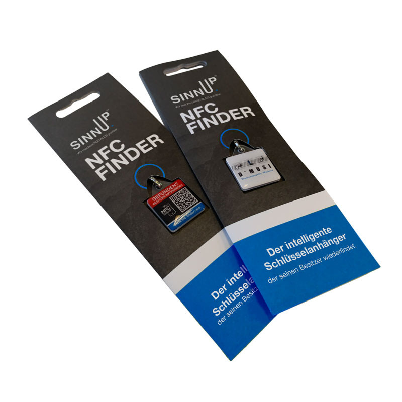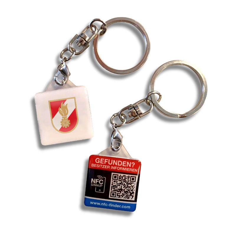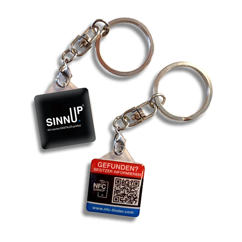 - Schlüsselanhänger ca. 34 x 27mm inkl. Fundsystem, NFC Chip und QR-Code