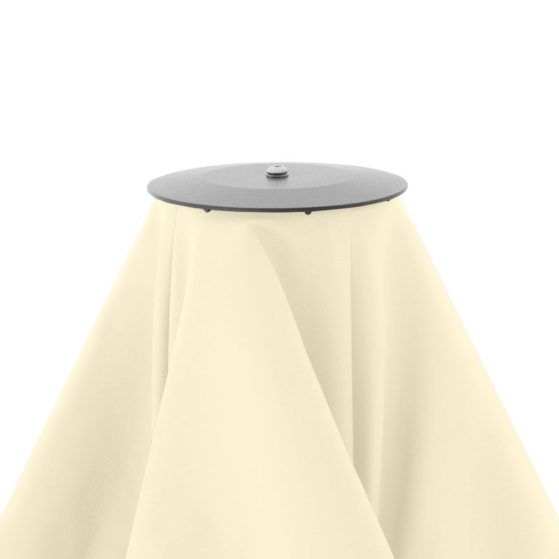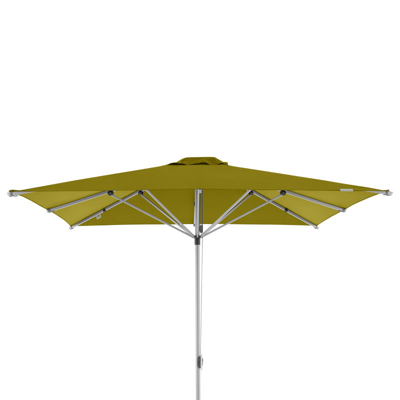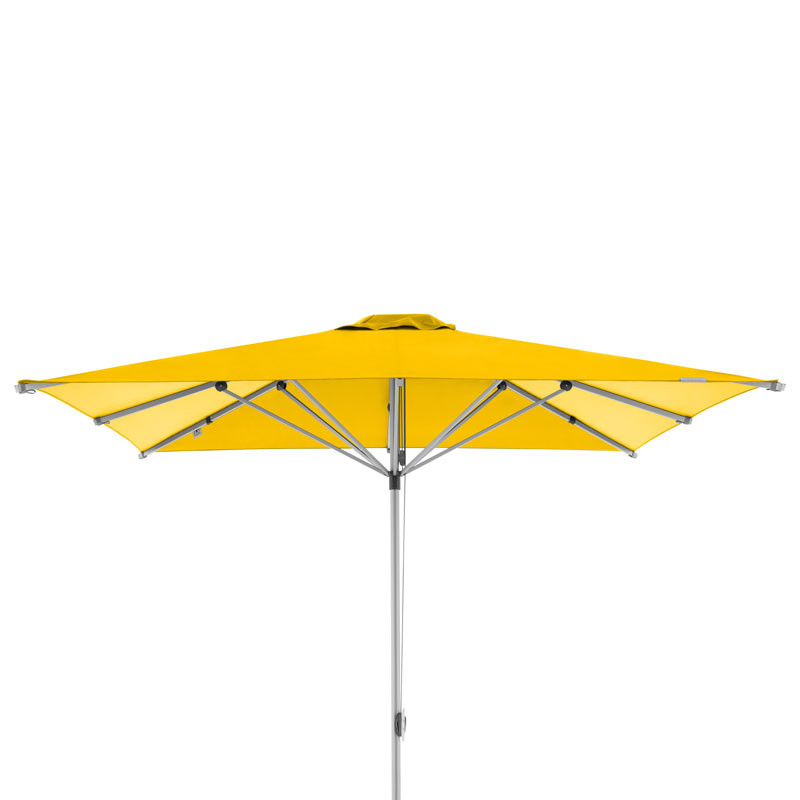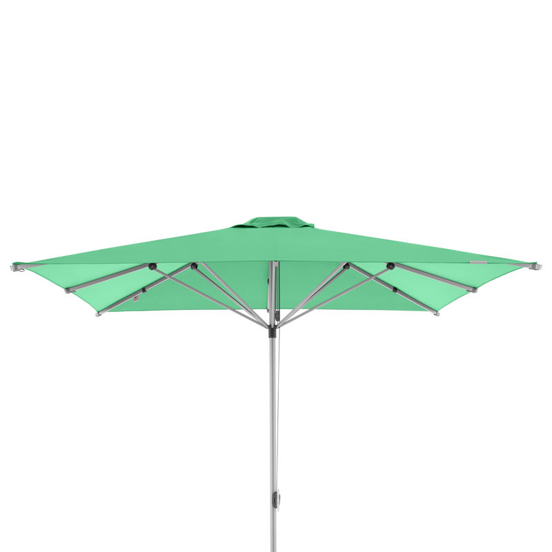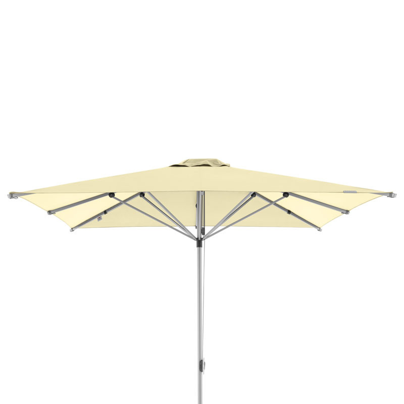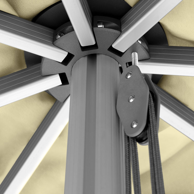 Dieser Großschirm ist mit einem Alu-Gestell in silber und einem Seilzug-Öffner ausgestattet. Das Polyester-Gewebe der Schirmbespannung ist licht- und farbecht nach DIN Note 6 und weist einen Lichtschutzfaktor von 80+ auf.