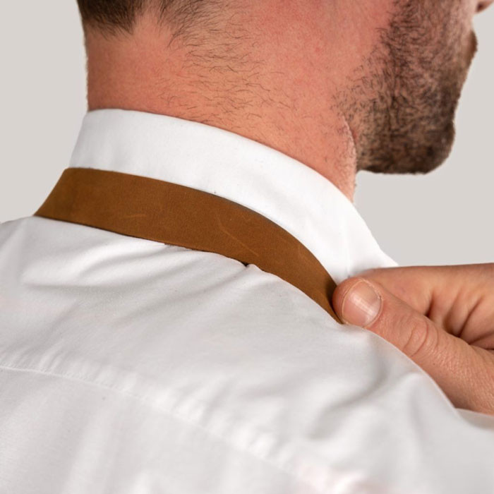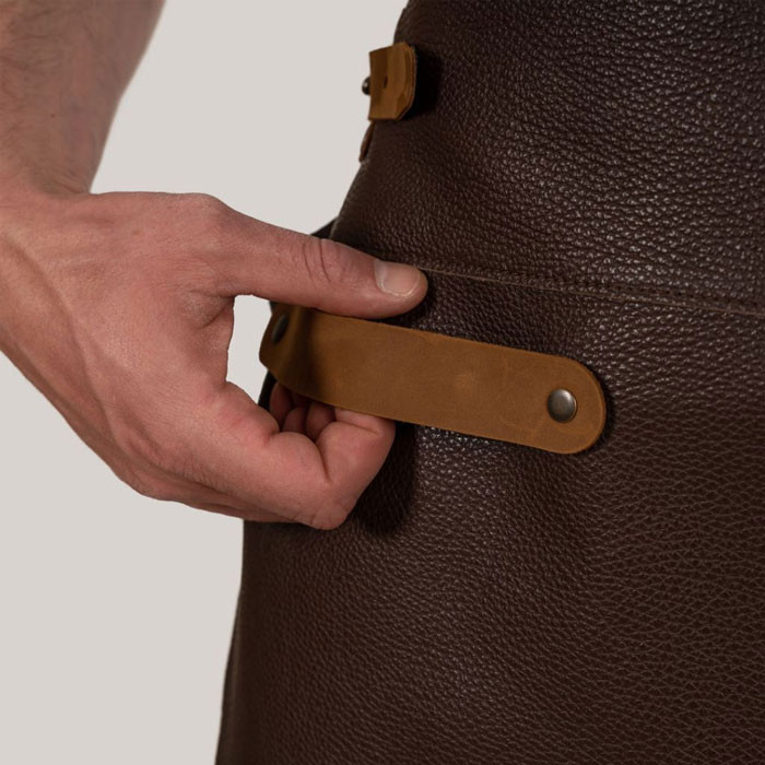 Ein flexibel verstellbarer Nackenriemen und Hüftgurt bieten den höchsten Tragekomfort in allen Situationen. Somit lässt sich die Schürze auch mühelos an- und ablegen.