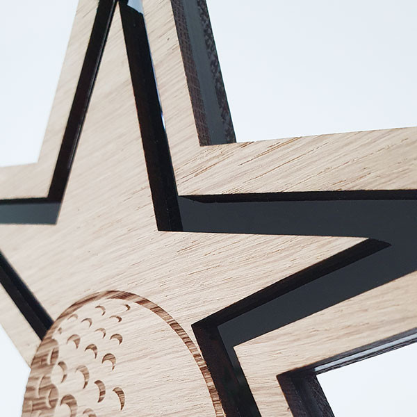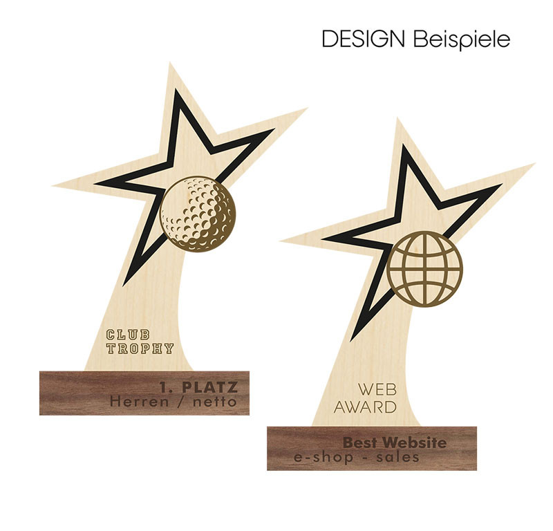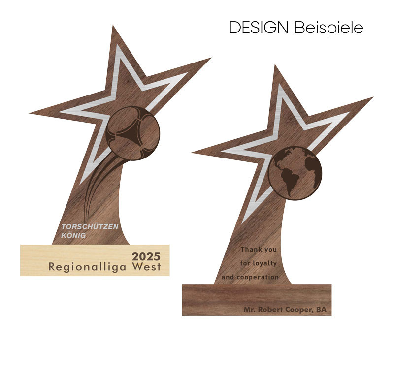 - Holzarten Trophäe: wahlweise Walnuss oder Eiche