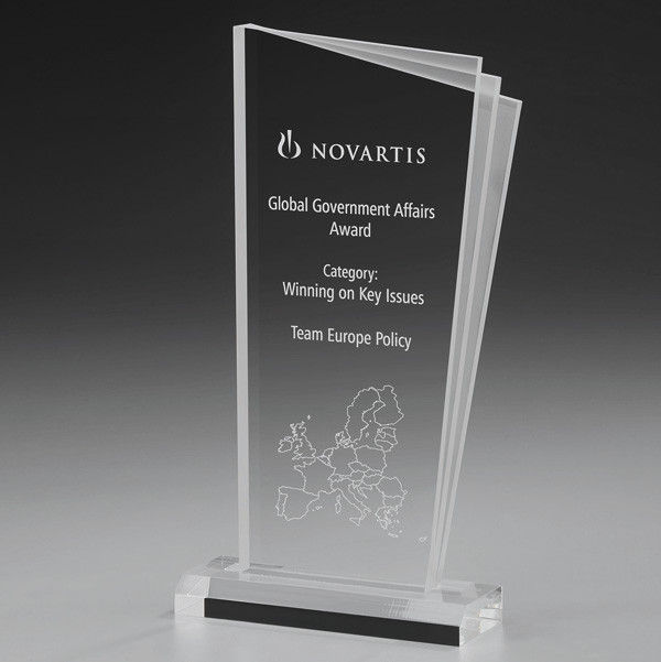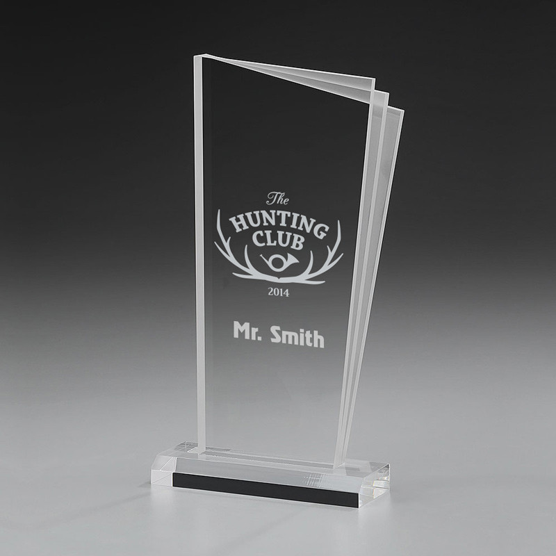 Durch die Kombination der klaren Acrylglasplatte und dem abgestuften, sandgestrahlten Acrylrand entsteht ein ganz besonderer Effekt, der diesen Award zu einer einzigartigen Siegertrophäe macht .