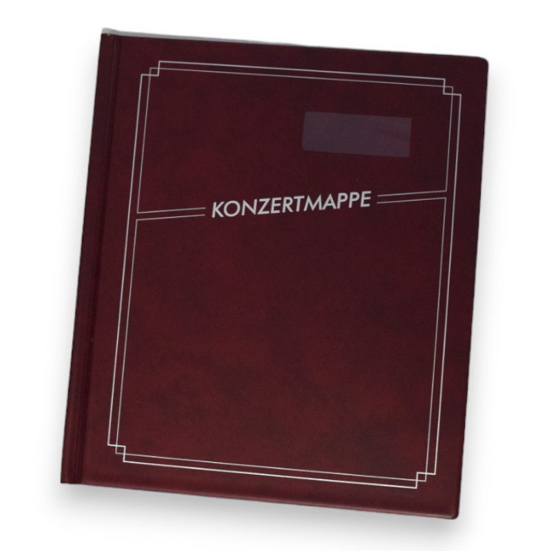 Hochwertige Konzertmappe im übergroßen A4 Format. Diese Mappe ist ideal für jedes Musikkapellenmitglied und verwahrt Noten sicher und geschützt. Außen mit Luxusfolie wahlweise in weinrot, schwarz, dunkelgrün oder dunkelblau gefertigt, ist die Musikmappe mit einem Namensfenster auf der Vorderseite ausgestattet. Diese Mappe ist wahlweise mit ihrem einfärbigen Musikvereinslogo bedruckt.
