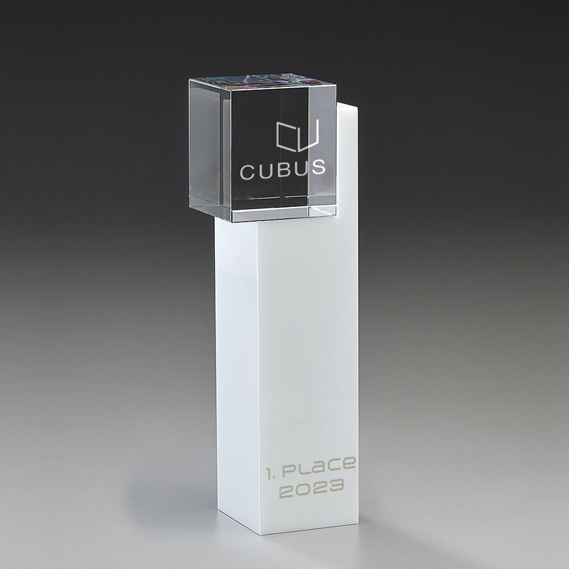 Majestätisch, graziös und ausgesprochen elegant fällt dieser Kirstallglas - Award durch seinen markanten Kubus und die Kombination von Weiß- und Klarglas auf. Ein Award für eine außergewöhnliche Ehrung!