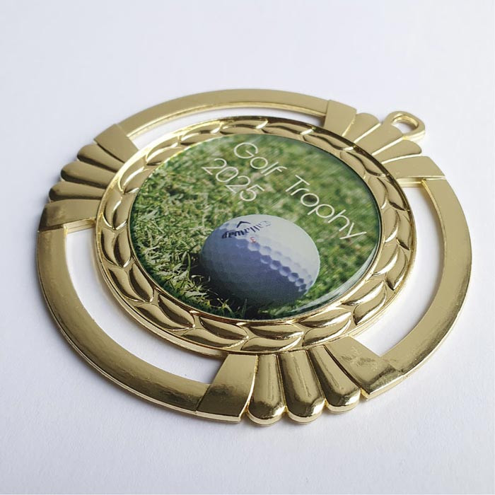 Medaille David fällt durch sein elegantes offenes Design auf. Trotz der beachtlichen Größe von 90 mm Durchmesser wirkt diese Medaille durch die Aussparungen elegant und edel. Mit einem 3D Doming Emblem und passendem Druckbild wird das Produkt zur begehrten Auszeichnung.