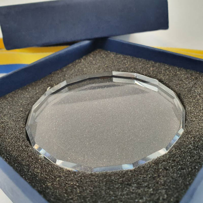 Diese hochwertige Medaille aus Kristallglas wird einzeln in Geschenkboxen geliefert und erhält durch gefasten Kanten ihre edle Anmutung. Der semitransparente 5C Druck mit Ihrem Wunschmotiv gibt Ihrer ganz individuellen Medaille die Krönung und versetzt den Medaillenempfänger ins Staunen.
