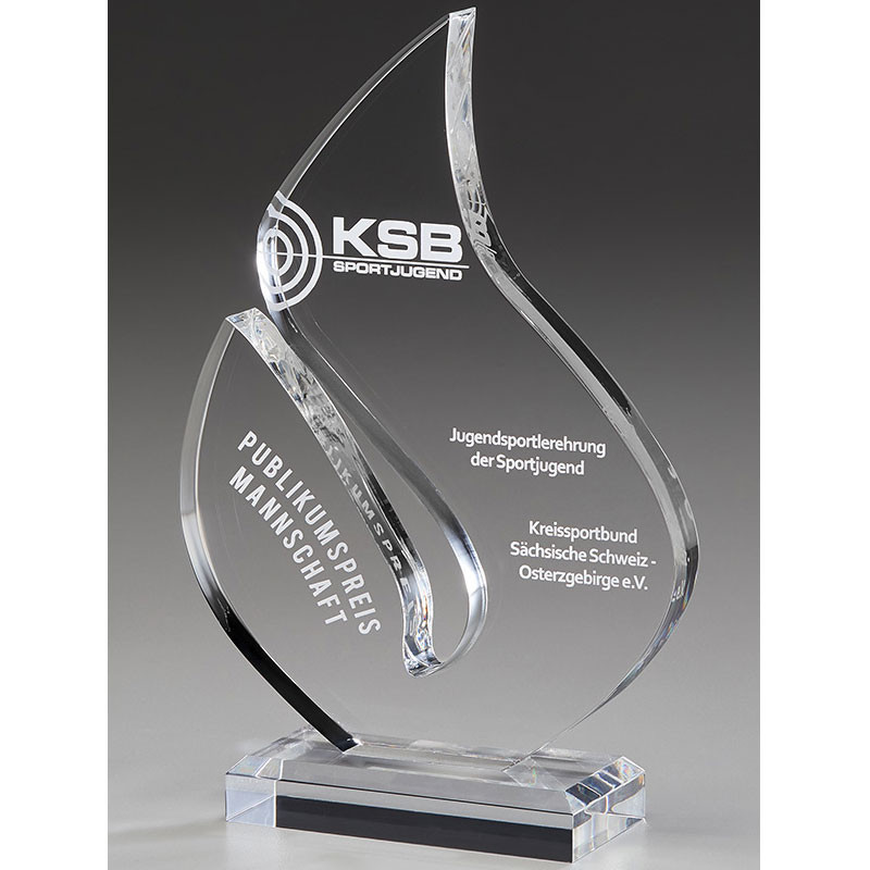 Diese Trophy brilliert durch seine graziöse und durchaus extravagante Form und lässt viel Spielraum für Veredelungskombinationen von Druck und Gravur.