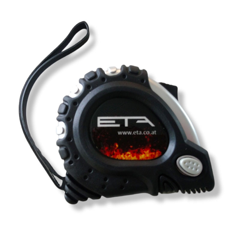 praktischer Rollmeter in der Farbe grau/schwarz mit gummiertem und extrem robusten Gehäuse.