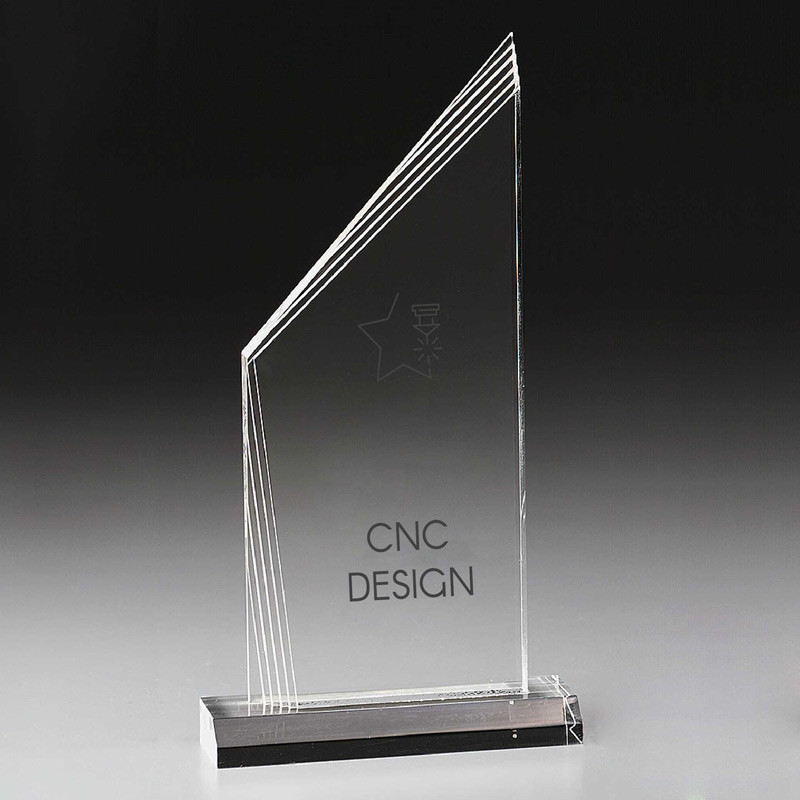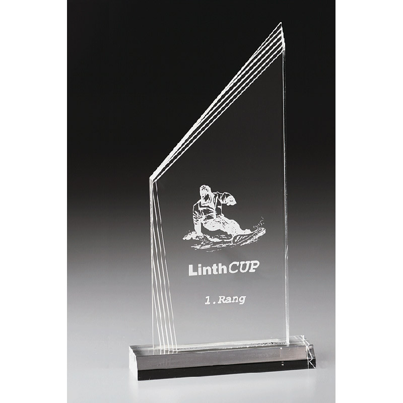 Die abgesetzte, gefräste Kante auf zwei Seiten des Acrylturms verleihen dieser Trophy eine äußerst wirkungsvolle Optik. Idealer Award auch für Sportverleihungen durch die große Veredelungsfläche und die 3 unterschiedlichen Größen.