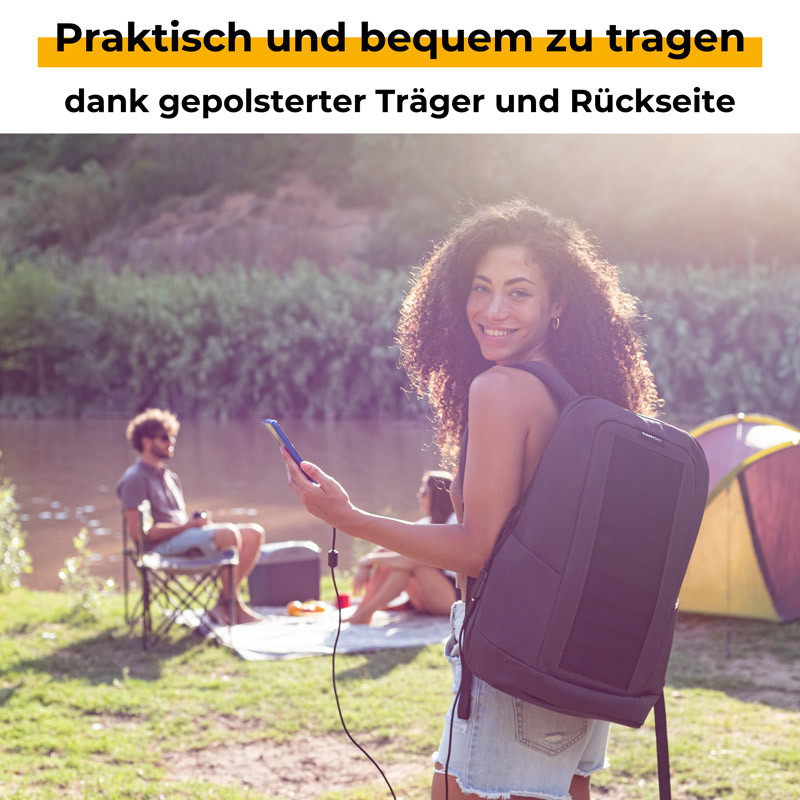 Der vielseitige Solarrucksack Sunnybag Iconic verfügt über viele praktische Fächer und ein eingearbeitetes Solarpaneel, das dem Rucksack seinen einzigartigen Look verleiht und deine Geräte mit erneuerbarer Sonnenenergie versorgt. Der Rucksack Sunnybag Iconic ist sowohl für Freizeitaktivitäten als auch für Beruf und Schule der ideale Begleiter. Er bietet richtig viel Stauraum und dank der durchdachten Aufteilung findet alles seinen Platz. Die gepolsterten Fächer schützen Laptop und Co. Über den USB-Ausgang können Smartphone, Tablet, Digitalkamera, Powerbank oder Smartwatch ganz einfach unterwegs wieder aufgeladen werden - und das mit sauberer Energie. Für noch mehr Unabhängigkeit und Sicherheit einfach eine spezielle Powerbank mit OPF-Technologie zwischen Solarpaneel und Gerät hängen.