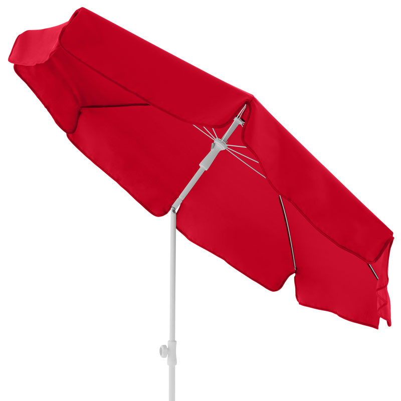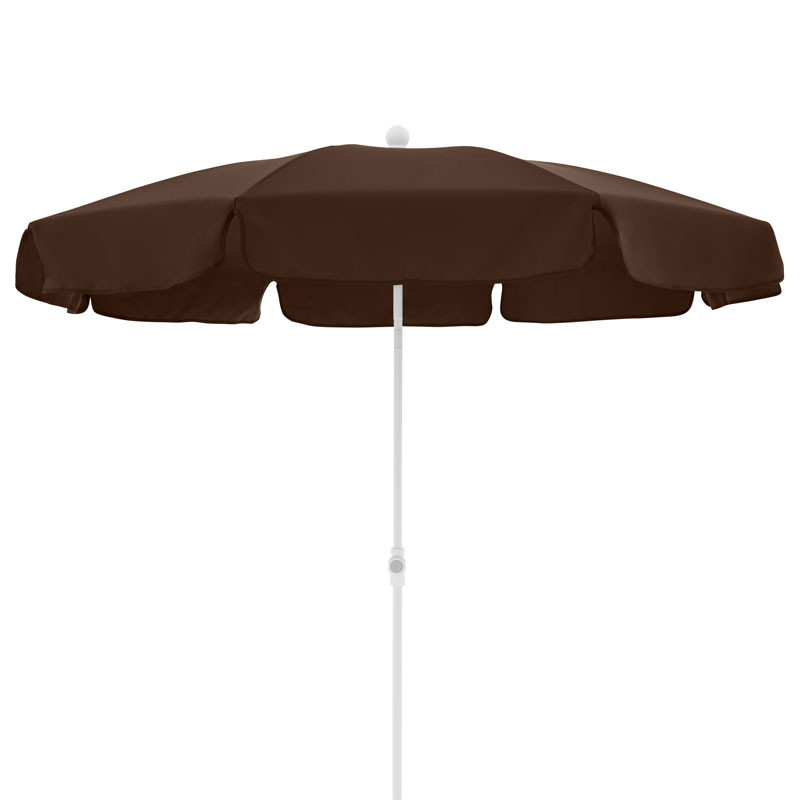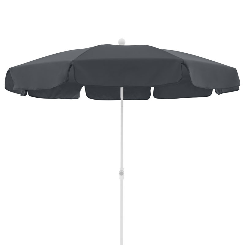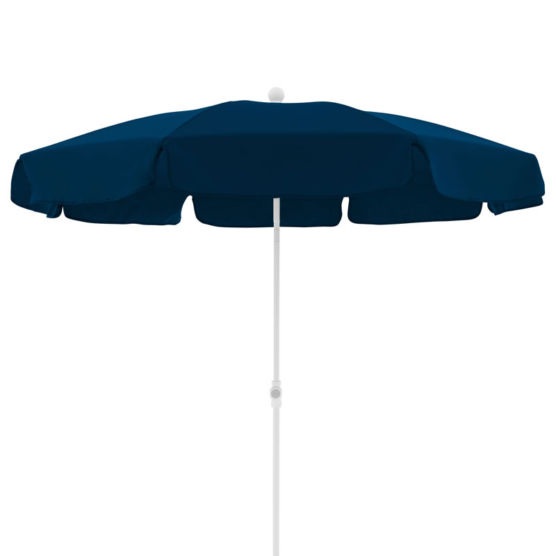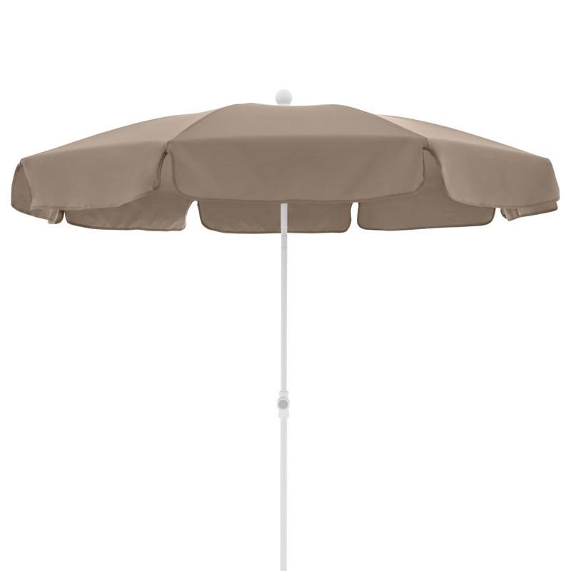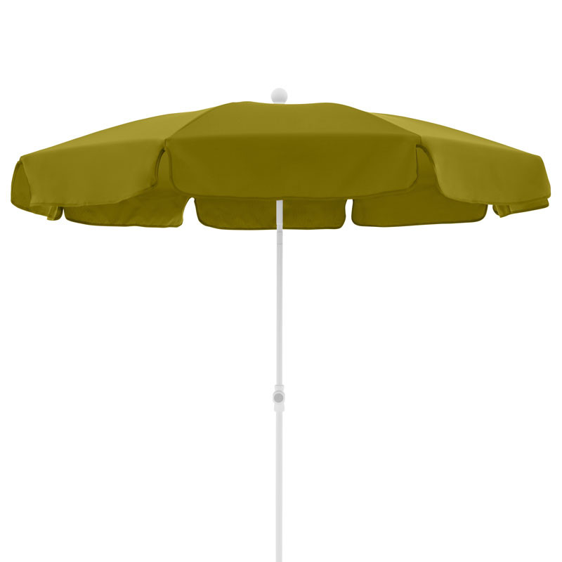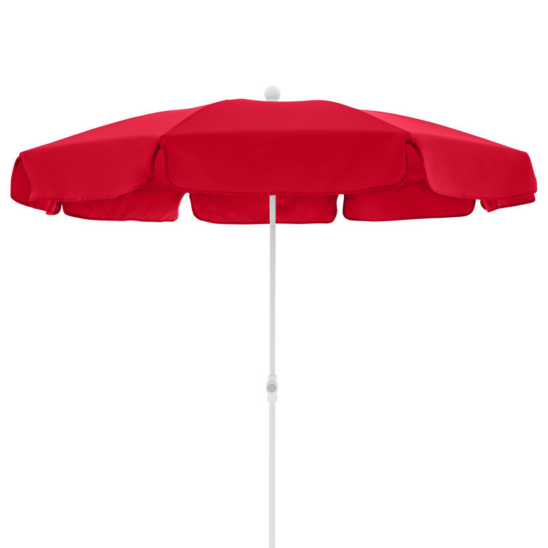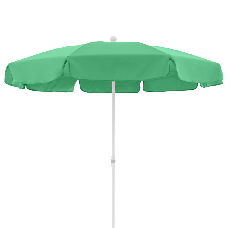 Dieser Sonnenschirm mit einem weiß pulverbeschichteten Gestell ist mit 3,8 mm starken Federdrahtschienen ausgestattet. Das Unterrohr verfügt über einen Drehfeststeller. Das Polyester-Gewebe der Schirmbespannung ist licht- und farbecht nach DIN Note 6 und weist einen Lichtschutzfaktor von 80+ auf.