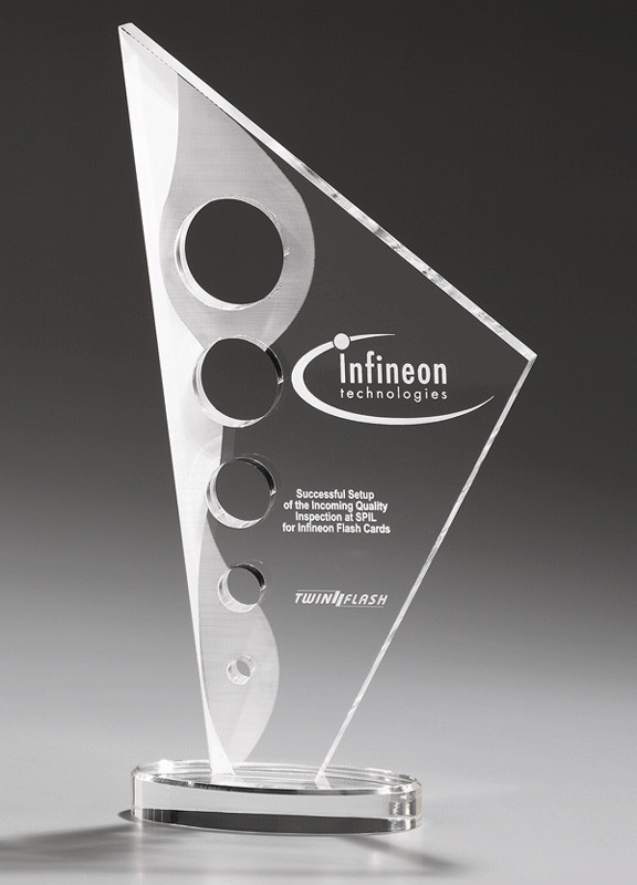 Diese 55 mm starke Kristallglassäule besticht durch Ihre High End Verarbeitung. Mit dem schwarzen Sockel und dem speziellen Frontschliff in Form eines ausgeschnittenen Fensters ist der Foundation Award ein optisches Highlight. Durch Ihren individuellen UV-Druck oder Ihre personalisierte Gravur wir diese Trophäe ein ideales Zeichen der Anerkennung.